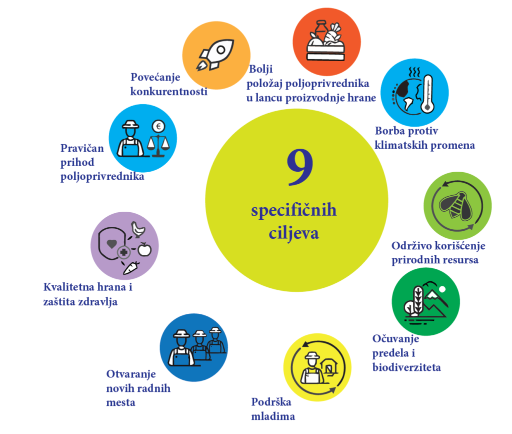 Девет специфичних циљева нове ЗПП у периоду од 2023. до 2027. године су приказани на следећој слици:
